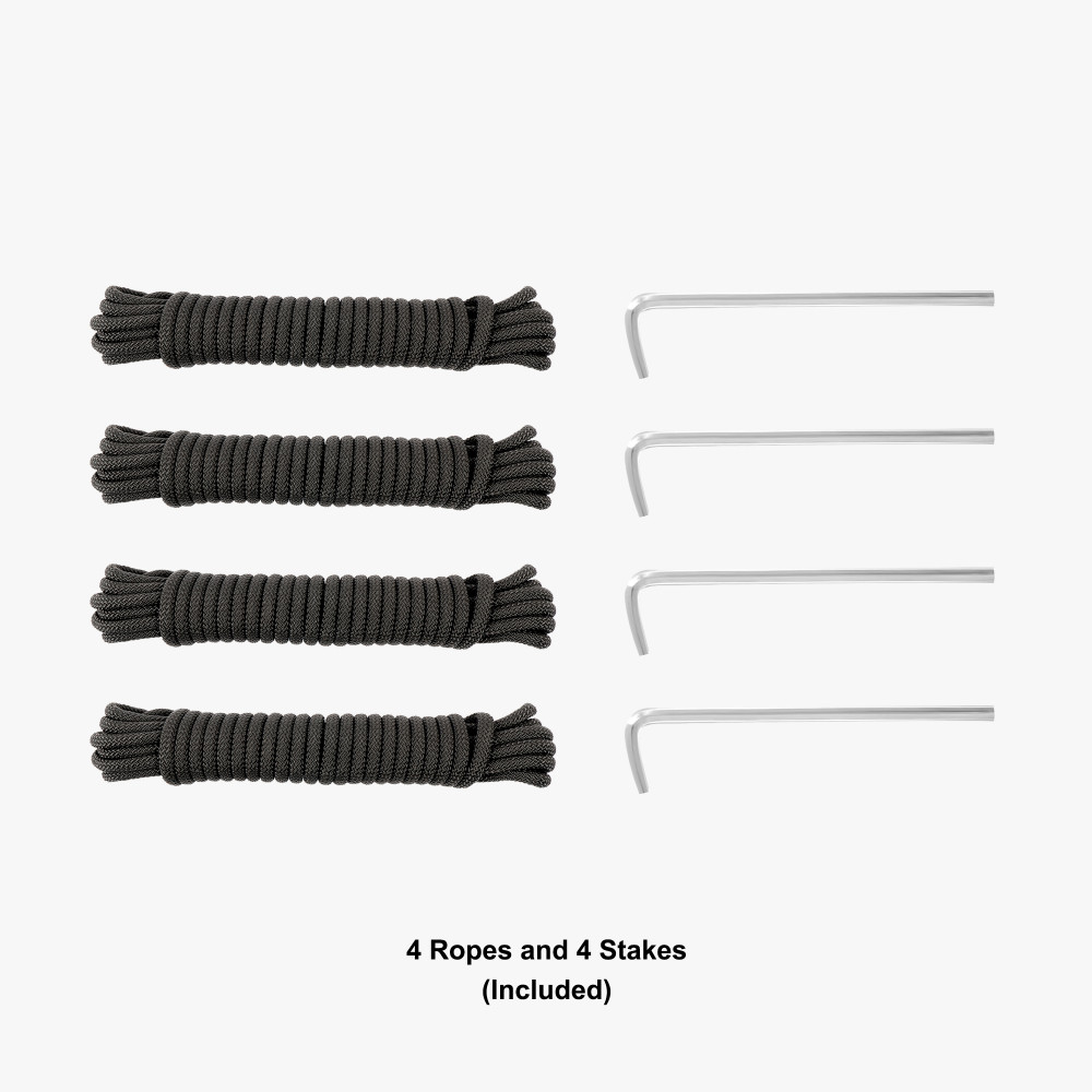 Heavy duty hex shape 40 mm. aluminum hardware gives the tent extra strength when exhibited outdoors, our frame is a serious upgrade from steel framed tents that bend and buckle easily. Telescopic legs allow you to adjust the height, and the interior lattice expands the tent interior with the crank of a handle. Each leg has a foot plate ready to be staked to the ground. (Ropes, stakes, and wheeled carrying bag included with hardware).